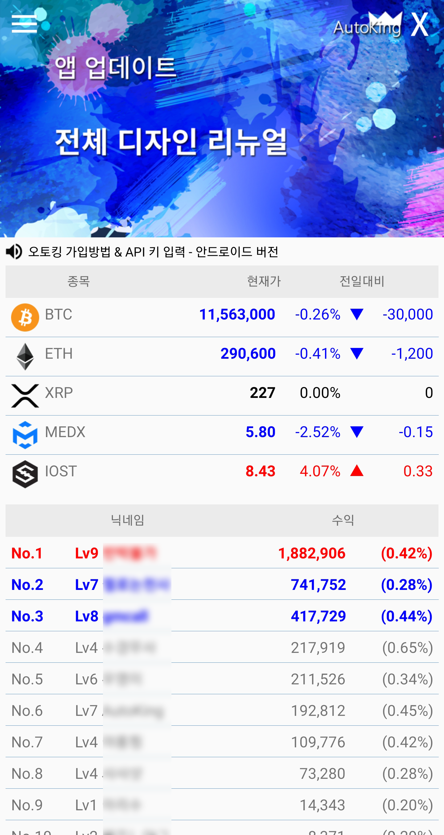 비트코인 자동매매 오토킹(AutoKing) 앱 리뉴얼 !!